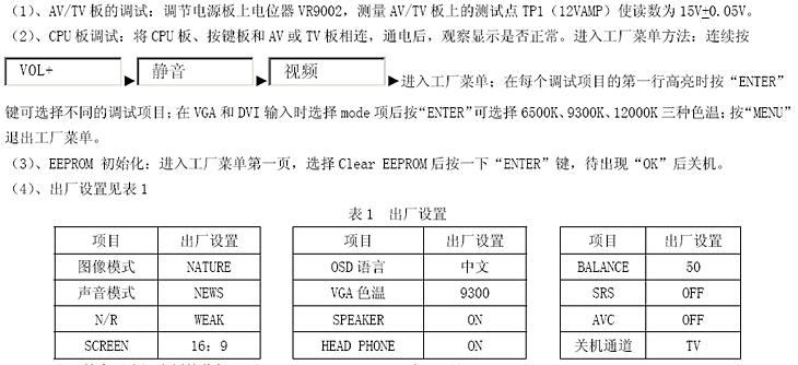 厦华等离子彩电PS-42K9进入工厂模式的调试方法