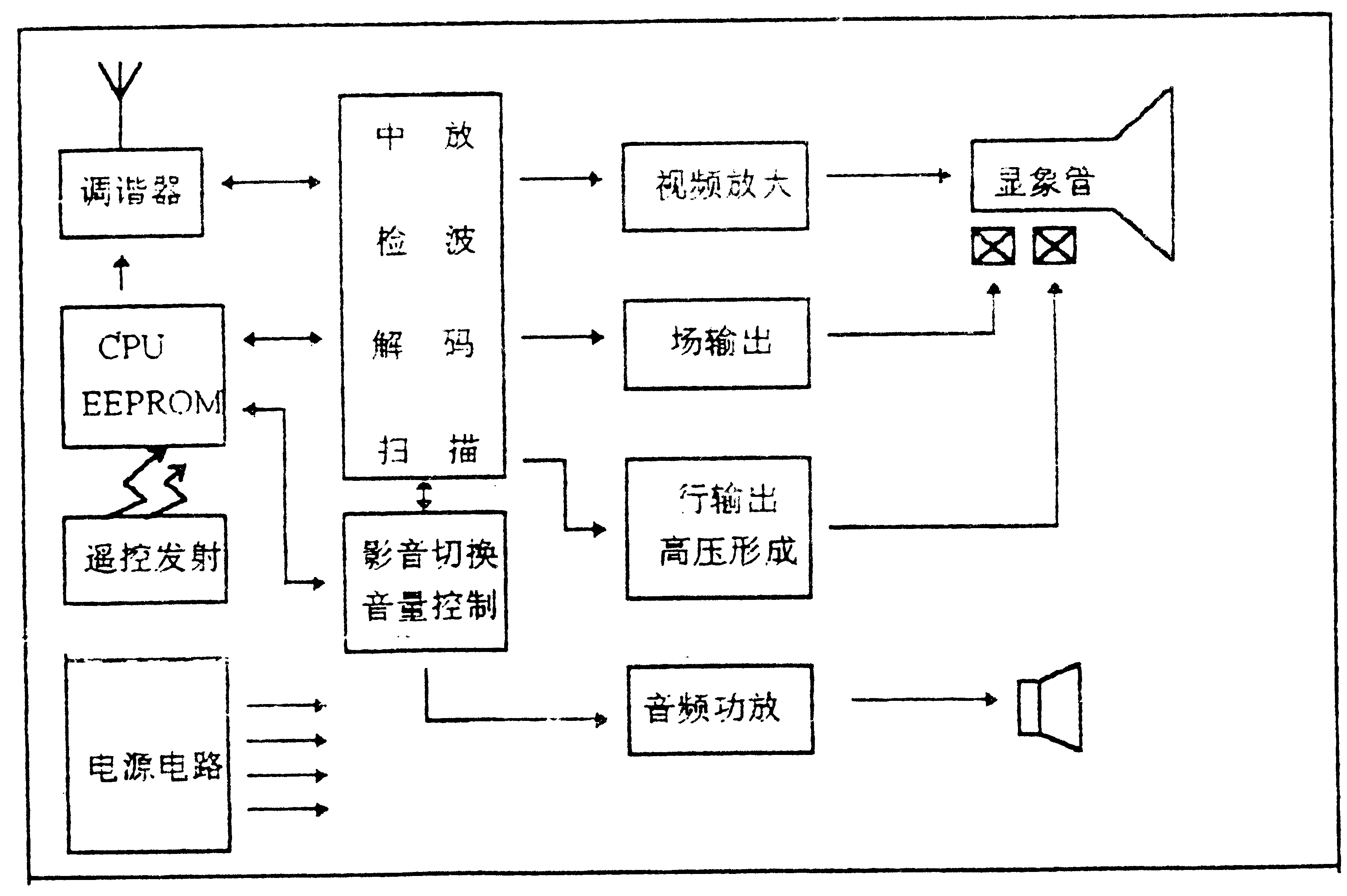 本机采用东芝新型遥控系统CTS-171及大规模单片集成电路TA8690AN,具有全功能红外遥控、中/英文菜单显示、PAL/4.43MHz、NTSC/3.58MHz双制式、制式自动识别、视频立体声等功能,图质、音质俱佳。电源适用电压范围宽(AC:145V~270V),可靠性好。