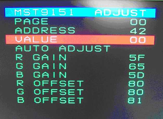 按音量减键,直到减到零,继续按音量减,同时按屏显,此时可出现工厂菜单,按菜单见到出现MST9151 ADJUST,用频道加减键选中AUTOADJUST,按音量加从而实现白平衡的自动调整。