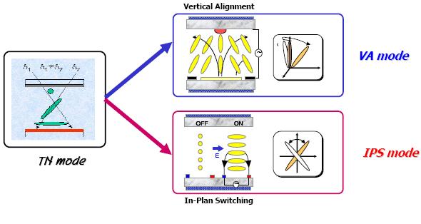 (图一)IPS硬屏与VA软屏分子结构排列对比图解