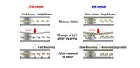 我们从图中可以看出,IPS硬屏的分子排列方式呈水平状。当遇到外界压力时,分子结构向下稍微下陷,但是整体分子还呈水平状。而软屏液晶的垂直排列状,则下陷厉害,并呈倒八字形。可见,在遇到外力时,硬屏液晶分子结构坚固性和稳定性远远优于软屏,基本保持原样不变。在实物上,直接触摸硬屏屏幕后,没有闪光现象,而软屏屏幕则出现了大面积明显的闪光区域,也就是我们我俗称的水纹现象。