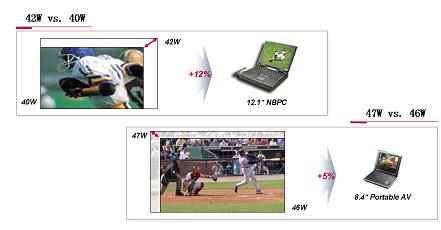 (图七)42W及40W的差距相当于12.1寸笔记本电脑,47W及