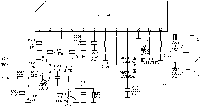 TA8211AH伴音功放电路典型应用电路图