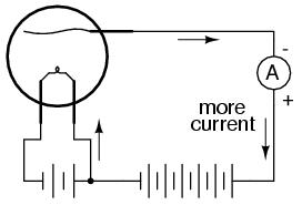 通过下面的实验,可以证明炽热的灯丝表面会有电子产生。如果增加一个电极,便会出现电子发射现象。
