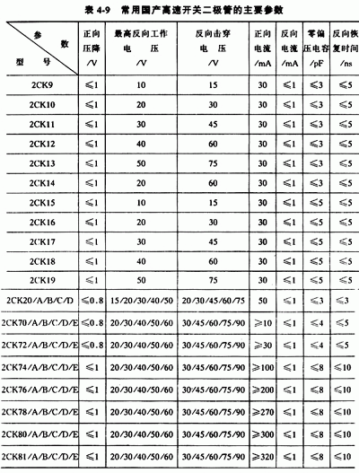 常用的国产高速开关二极管有2CK系列,见表4-9。