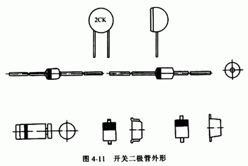 开关二极管的封装形式有塑料封装和表面封装等。如图4-11所示。