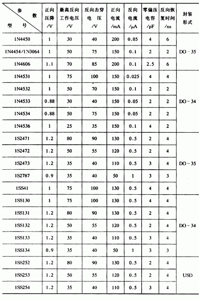 常用的低功耗开关二极管有RLS系列(表面封装)和1SS系列(有引线塑封),表4-13为其主要参数。