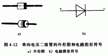 单向电压开关二极管也称转折二极管,邮PNPN四层结构的硅半导体材料组成,其正向为负阻开关特性(指当外加电压升高到正向转折电压值时,开关二极管由截止状态变为导通状态,即由高阻转为低阻),反向为稳定特性。图4-12是单向电压开关二极管的外形图和电路图形符号。