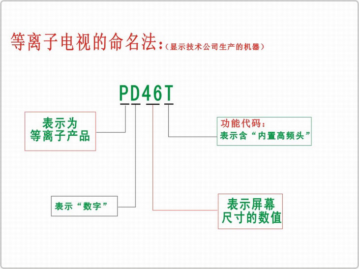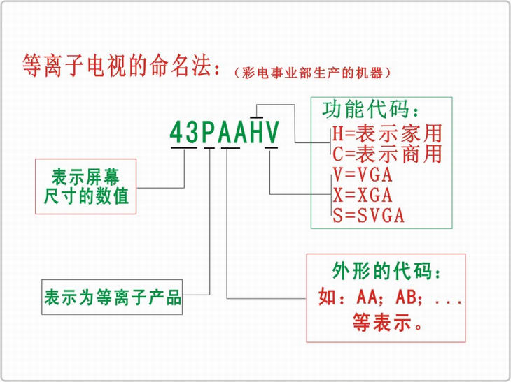 现在PDP彩电有创维的两个子公司在生产,采用的命名法分别如下: