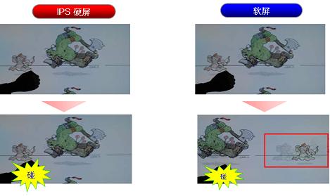 (图二)触摸时IPS硬屏与VA软屏的效果对比