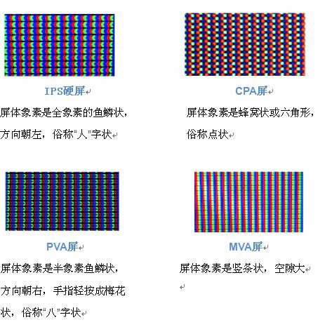 2、可使用放大镜,对比液晶分子形状图,全像素鱼鳞状方向朝左即 为IPS硬屏。