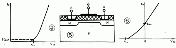 javascript:resizepic(this) border=undefined>由于这种结构在VGS=0时,ID=0,称这种MOSFET为增强型。另一类MOSFET,在VGS=0时也有一定的ID(称为IDSS),这种MOSFET称为耗尽型。它的结构如图5所示,它的转移特性如图6所示。VP为夹断电压(ID=0)。